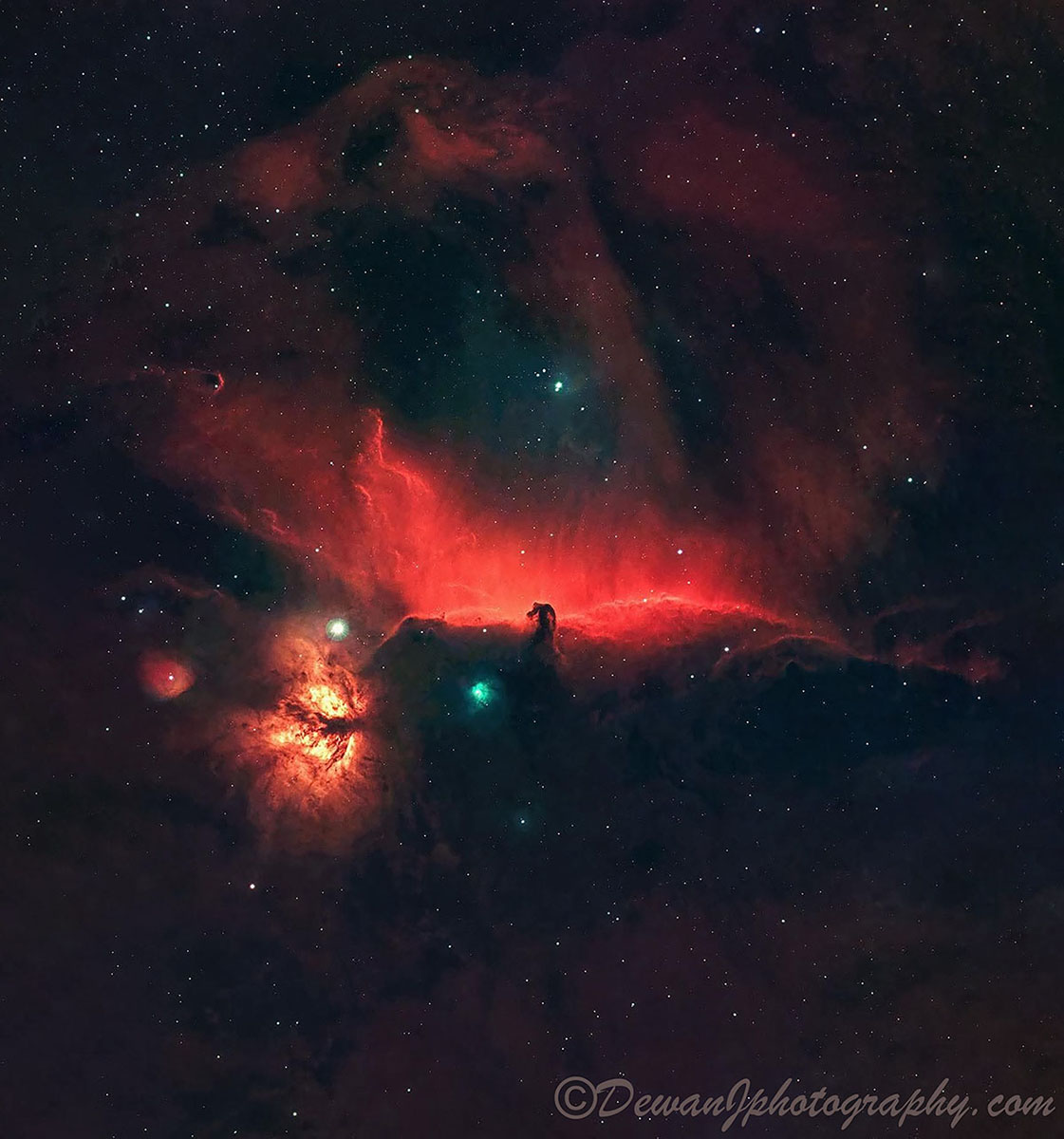 The equipments used to take this photographs are 60mm apochromatic dual lens refractor telescope on equatorial mount, ZWO ASI533MC Pro camera. CLS filter, field flattener, filter wheel, etc. Set up shooting duration and intervals on NINA software, thereby automated. A few of the photos had been shot in RGB channels using monochrome filters independantly. The photos were post processed in Adobe Photoshop and Lightroom.
